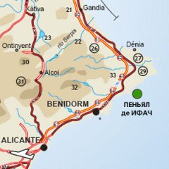 Пеньял/Пеньон-де-Ифак (Peñón/Penyal de Ifach), символ Коста Бланка, вдающаяся далеко в море известняковая скала занимает площадь ок. 50.000 м2. Образовалась в результате сползания в сторону моря близлежащей горной цепи Сьерра-де-Олтà (Sierra de Oltà). Высота скалы – 332 м, длина – 1000 м. Гора соединяется с сушей узким перешейком. Скала поражает своей необычной формой и красотой и по праву считается поразительной природной достопримечательностью побережья Средиземного моря.