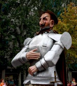 «Гиганты», к удовольствию горожан и гостей праздника, продолжают чинно шествовать по городским улицам. Известно, что в 1841 г. группа Гигантов насчитывала всего 4 фигуры, которые символизировали 4 Стороны Света. Сейчас Гигантов – 12. Это Король и Королева, Дон Кихот и Дульсинея, Герцог и Герцогиня, Китаец и Африканка, Житель Беарна и его жена, Августина и Палафокс. Каждый из героев имеет свою историю и конкретного прототипа. Для тех, кто близко не знаком с творчеством Сервантеса, поясню, откуда взялся Дон Кихот. Во второй части великого романа Рыцарь Печального Образа посещал Арагон. Глубоко символично, что фигура Дон Кихота самая тяжелая и к тому же довольно высокая. «Куклоносы» даже бросают жребий, чтобы он выбрал того, кому достанется честь «таскать» на себе неудобный литературный символ Испании. Герцог и Герцогиня – те самые, что назначили Санчо Пансу губернатором воображаемого острова Инсула Баратариа (Insula Barataria). Это место, судя по его описанию в романе, находилось в районе Алькалá де Эбро (Alcalá de Ebro) в Арагоне. Некоторые, правда, принимают Герцога за Дон Жуана. Их вводит в заблуждение наряд этой фигуры.