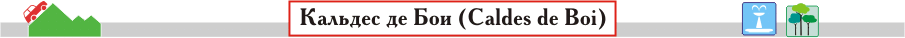 * КАЛЬДЕС-де-БОИ (Caldes de Boí) или «Горячие источники Бои» – бальнеологический курорт, расположенный на высоте 1550 м над уровнем моря. Всего здесь имеется 37 источников минеральной воды, температура которых постоянная и варьируется в пределах 24 – 56 С. По преданию, один из секретов легендарной энергии Юлия Цезаря заключался в том, что он периодически восстанавливал силы на целебных водах Кальдеса. Источники пробиваются из скал каскадами водопадов, вырываются из лагун искристыми струями фонтанов, выскальзывают из-под камней прозрачными ручьями и омывают крошечные гроты, ставшие оригинальными природными банями. В Средние Века возле римских терм появилось Святилище Чудотворной Девы Кальдес-де-Бои, к которому стекались страждущие со всей Европы, а в конце XIX в. появился бальнеологический курорт в современном понимании этого слова. Он занимает площадь 24 гектара, и на его территории размещаются: два отеля, парки, сады, лагуны, горячие и холодные бассейны, различные спортивные сооружения, детские площадки, магазины, массажные и косметические кабинеты. Местные источники помогают больным, страдающим от ревматизма, респираторных, урологических, кожных, сердечно-сосудистых и гастроэнтерологических заболеваний, неврозов и стрессов.