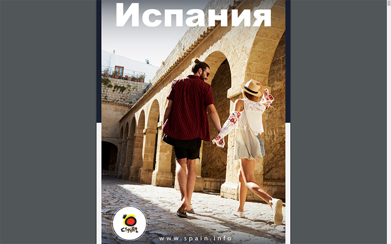 «Испания — страна бесконечных возможностей. Её культурное, природное и гастрономическое достояние огромно и впечатляюще. Прогуляйтесь по её современным городам и по тем, что перенесут вас в другие эпохи. Вас восхитят её климат и её люди. Попробуйте наши знаменитые закуски тапас или познакомьтесь с самой высокой кухней. Исследуйте дикую фауну наших охраняемых природных территорий или позанимайтесь спортом на свежем воздухе. Сходите потусуйтесь или займитесь шопингом. Полежите на пляже или покатайтесь на лыжах в горах. Что бы вы ни любили, вы найдете это здесь. Погрузитесь в культуру с тысячелетней историей. От археологических памятников Атапуэрки в Бургосе до Альгамбры в Гранаде. Испания — третья в мире страна с самым большим количеством объектов, занесенных в список всемирного наследия ЮНЕСКО.» ….